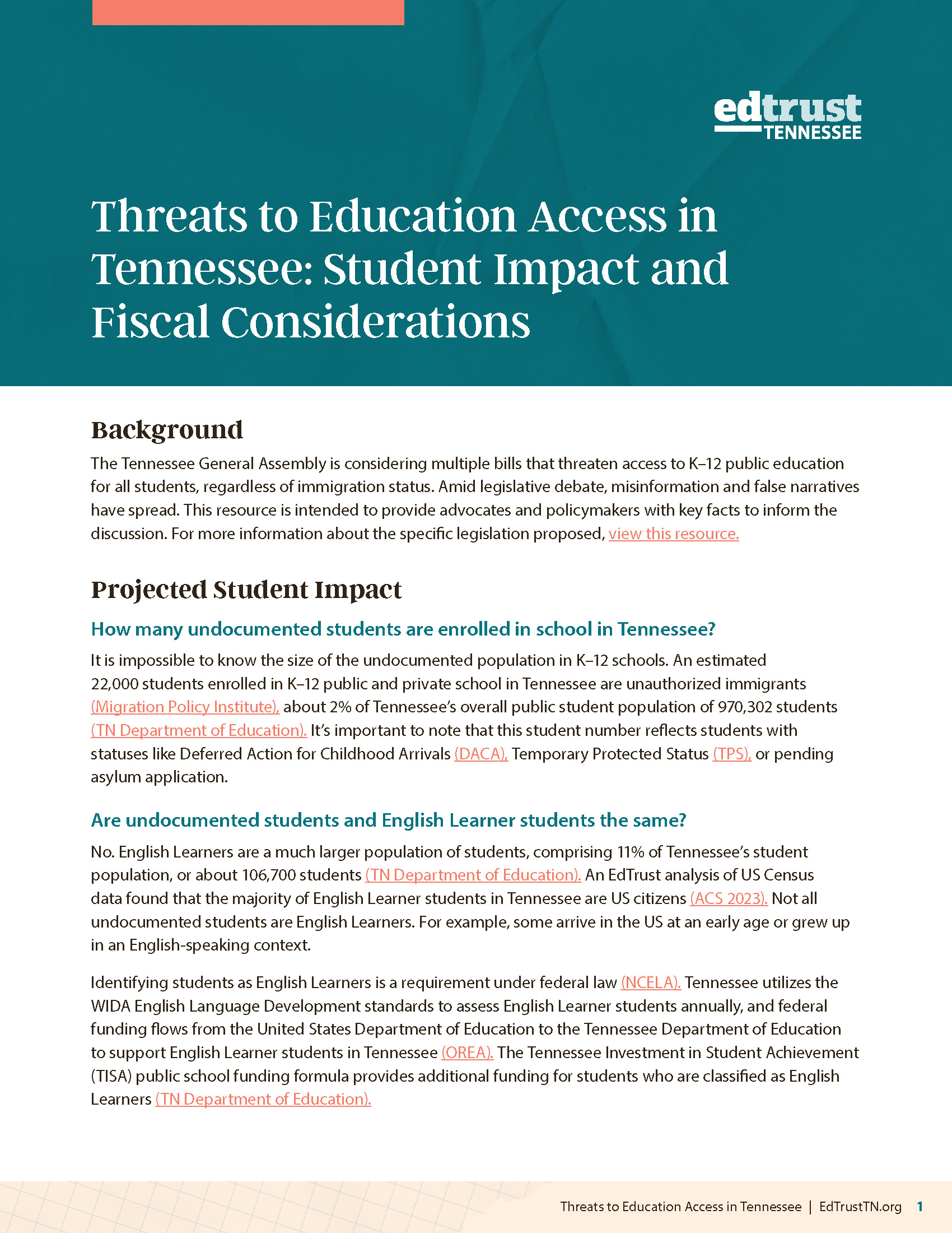 Threats to Education Access in Tennessee: Student Impact and Fiscal Considerations